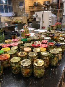 Mitglieder haben fleissig Krautstiele haltbar gemacht. So werden wir im Winter in den Genuss von eingemachtem Krautstiel kommen! Angeleitet wurden sie vom Küchenchef aus der „Blauen Ente“ bei der Mühle Tiefenbrunnen. Nochmals vielen Dank dafür!