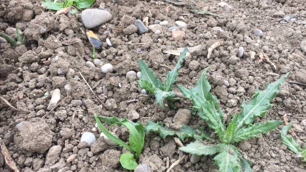 Im Foto unten ist ersichtlich, wie gross und stark die Ackerkratzdistel im Vergleich zu unserem Spinat links ist.