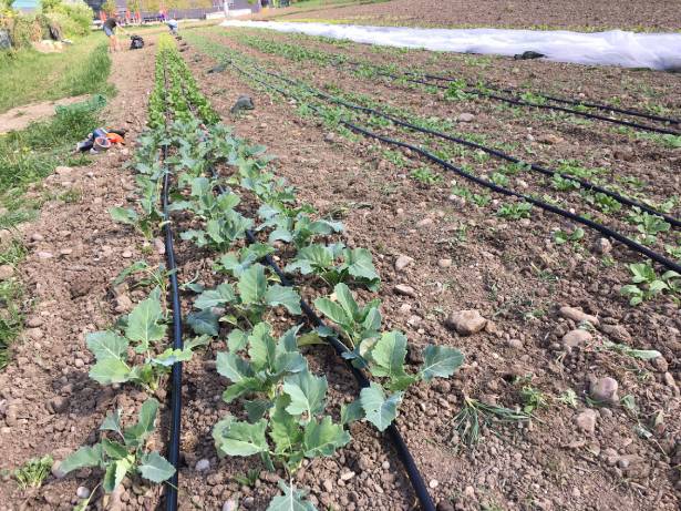 Wir haben nun für die oberen, neu umgebrochenen Teile die Anbauplanung etwas abgeändert. Noch immer hoffen wir, dort nicht zu viele Disteln vorzufinden (das wird sich erst in den nächsten 2 Wochen zeigen). Zur Sicherheit haben wir dort mehr gepflanzte Kulturen eingeplant, damit sie konkurrenzfähiger sind, falls es Disteln gibt. Wir haben die Kürbisse auf die doppelte Menge aufgestockt und auch mehr Weiss- und Rotkohl sowie Wirz für den Winter geplant. Auf der unteren Fläche versuchen wir, im Juli nochmals Rüebli und Randen zu säen. Wir haben zudem bereits 3 Beete Sellerie gepflanzt, auch ein Winterlagergemüse -> dieser mag es zwar vor allem warm, aber da unsere Jungpflanzen bereits so gross gewachsen waren, haben wir es nun gewagt, ihn gerade in die schön nasse Erde zu setzen. So stehen die Chancen gut, dass wir im Herbst/Winter eine möglichst grosse Ernte einbringen können:)